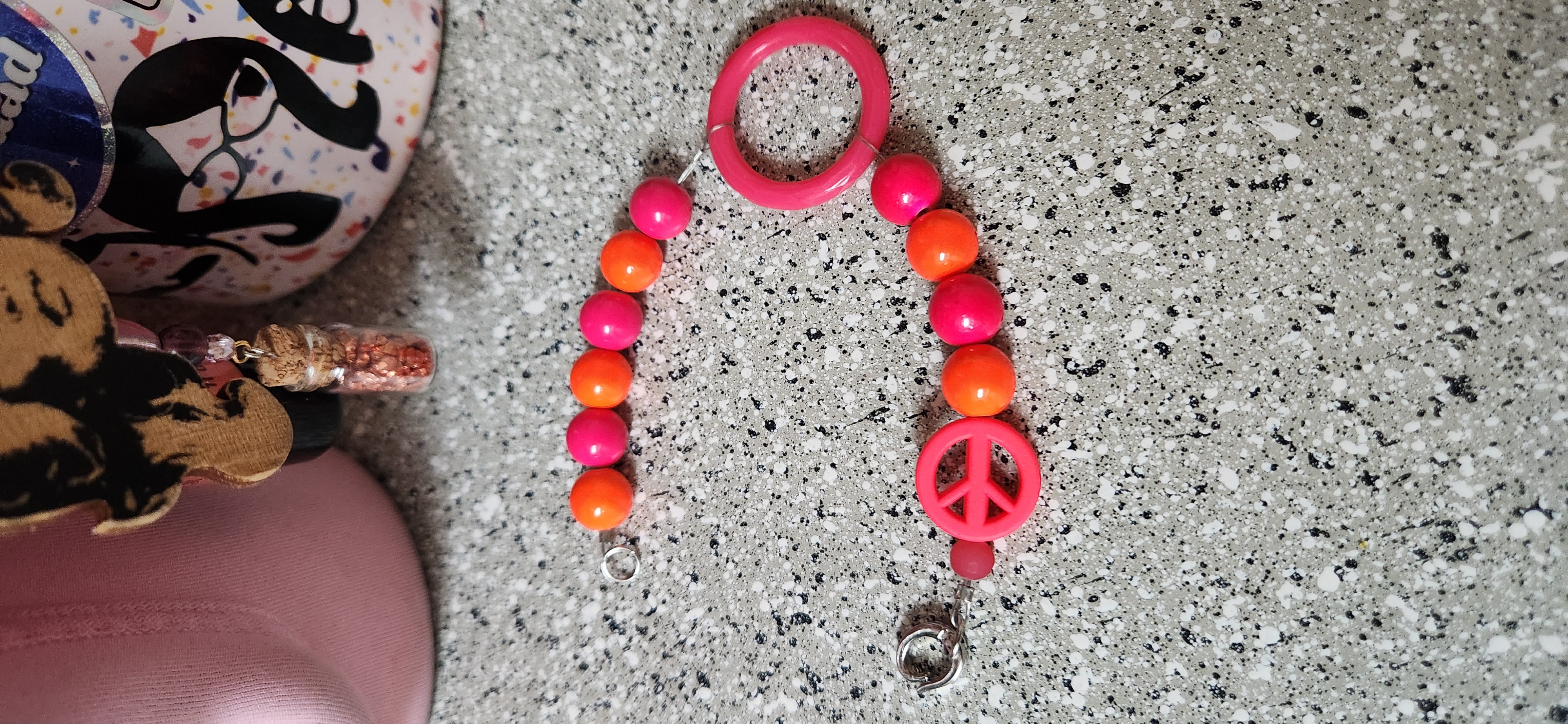Water bottle charm with bright pink and orange acrylic beads and a metal clasp - approx. 7 1/4" long with clasp