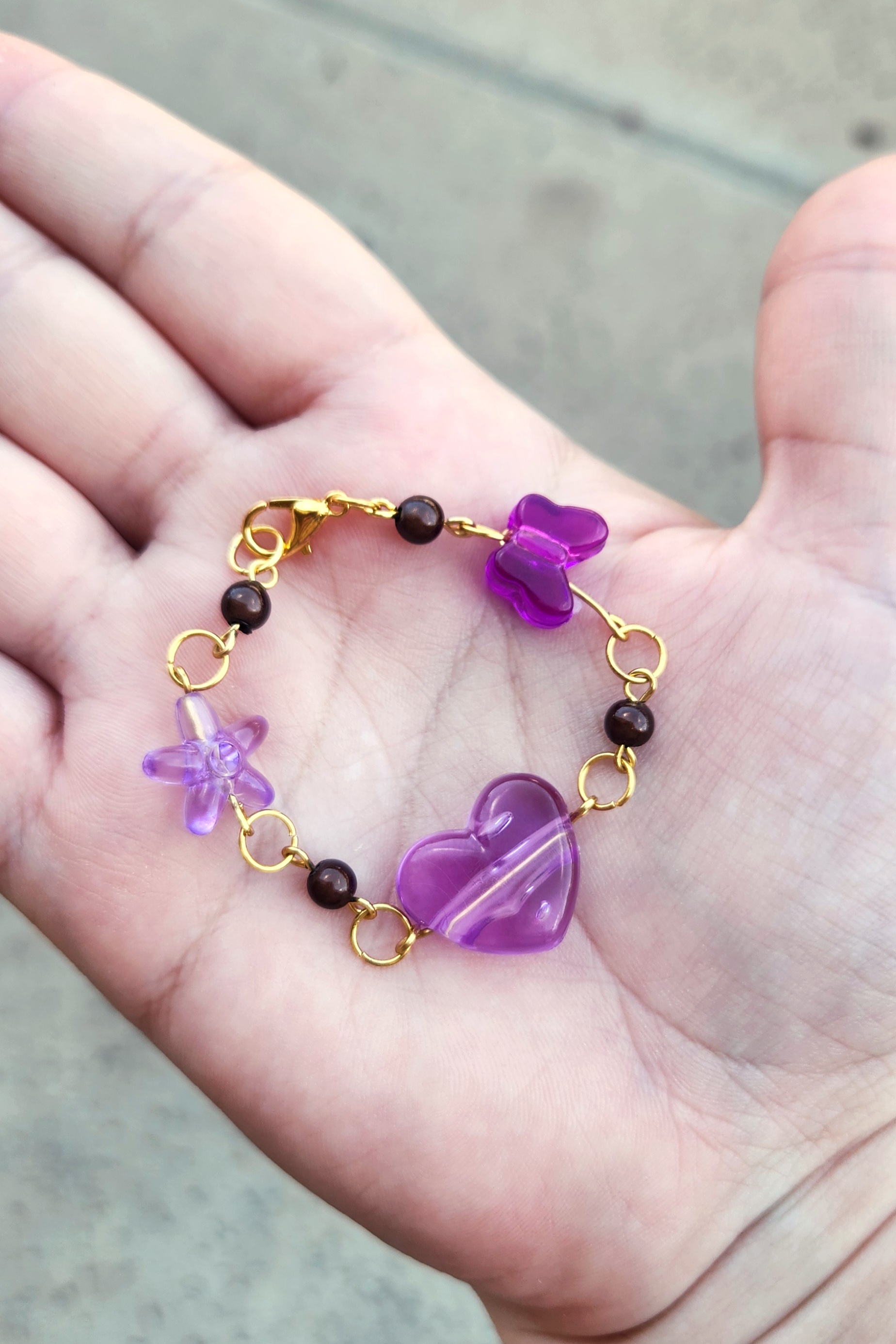 90s inspired water bottle charm with purple and brown beads and gold hardware ~ this would have been a hit at Lilith Fair, trust and believe