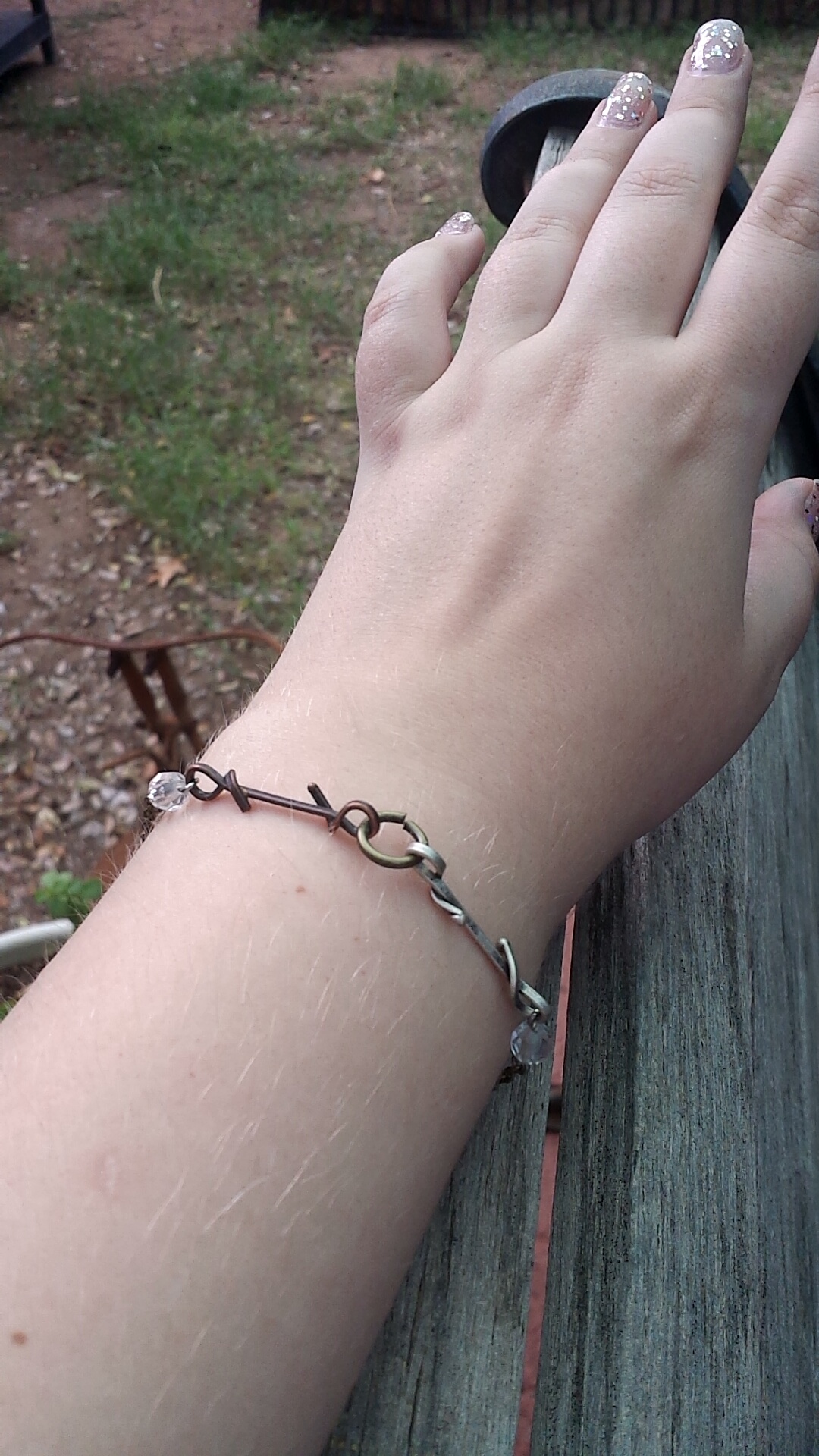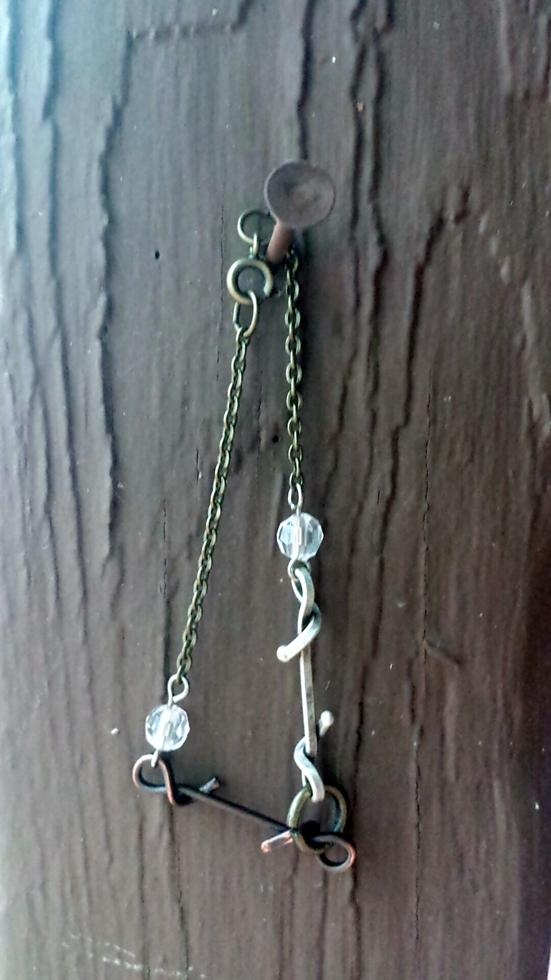 Banana approves of this item (=^โฅ^=) - little twisted bars with clear beads on metal chain - 7" long - spring ring closure