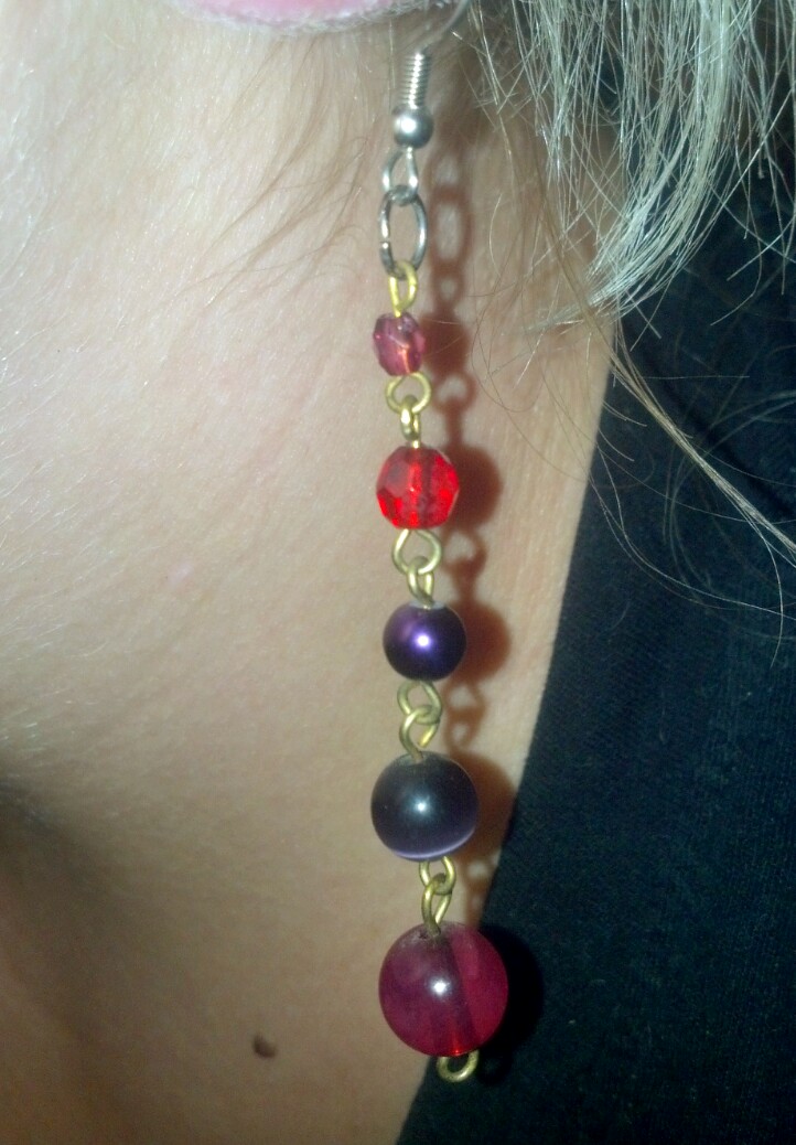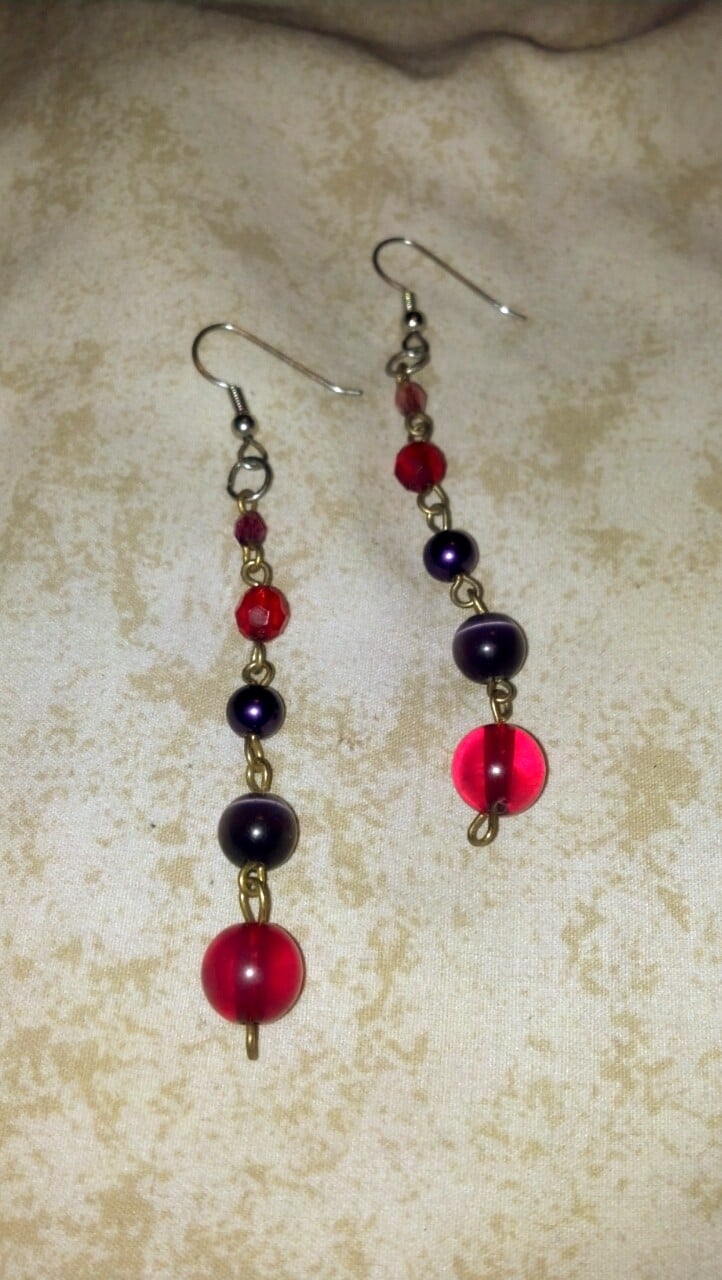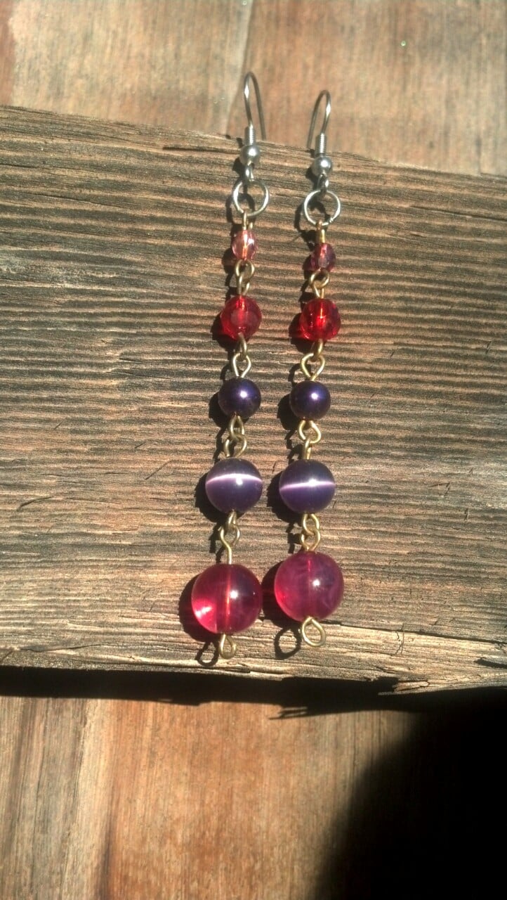 Even smaller little bubbles!! - red, purple, and pink beads on gold wire - 3 1/4" long