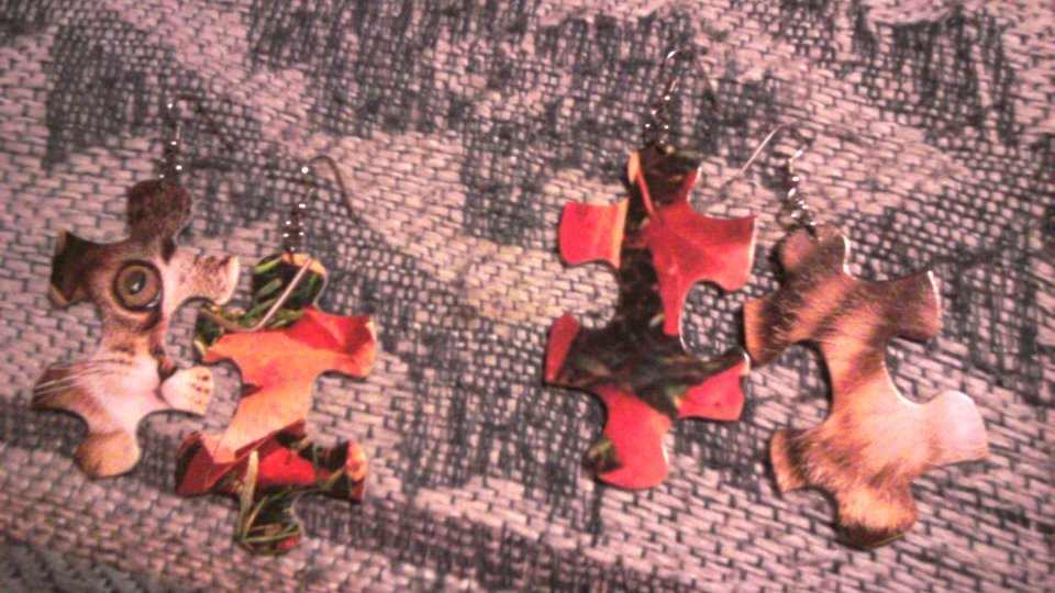 I've made a bunch of earrings out of puzzle pieces, so when you buy a pair I'll pick out two random earrings and it will be a bit of a surprise what you get!! There is a picture of what the finished puzzle looks like so you have a general idea of what you're getting :)