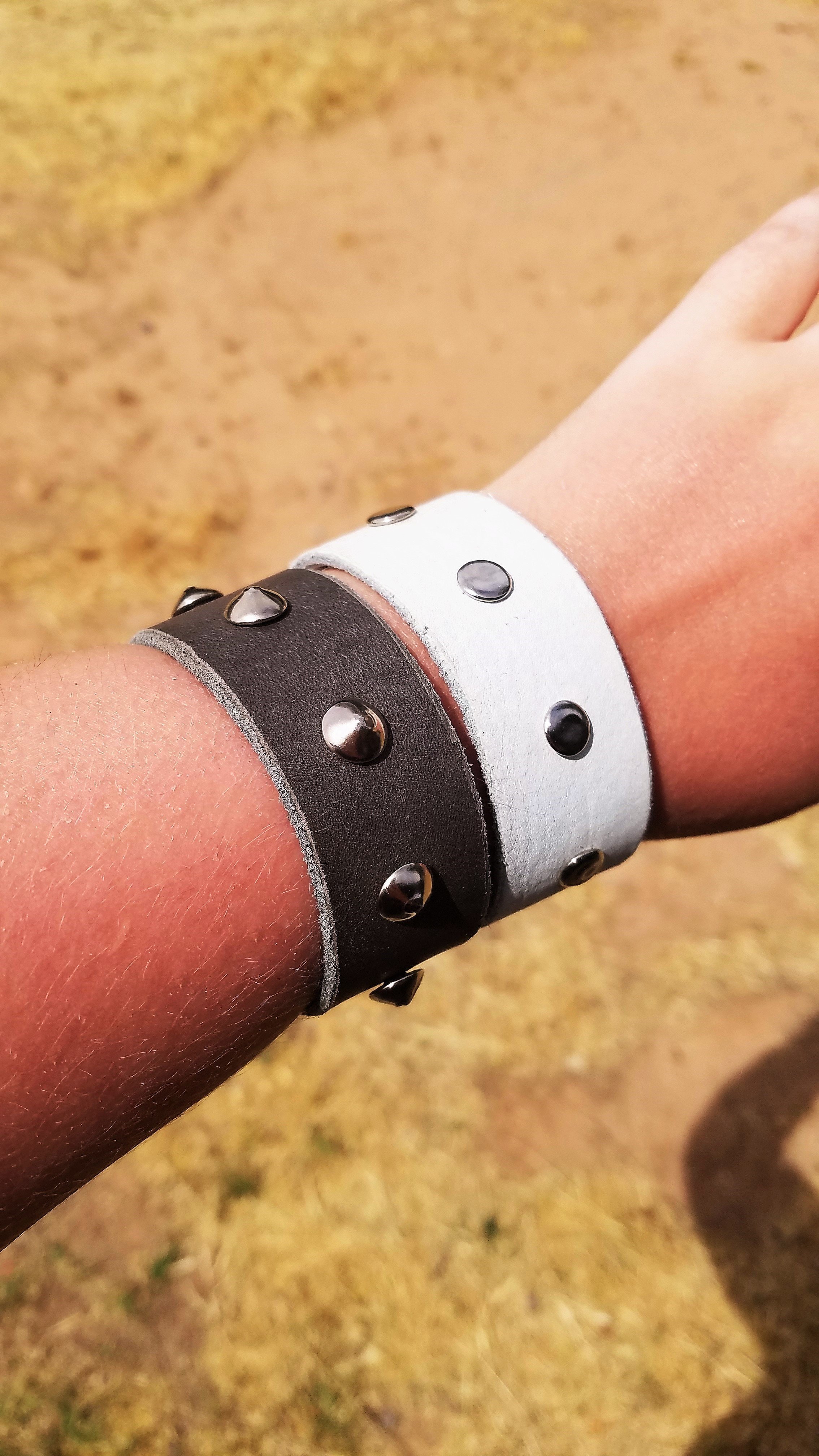 Real leather cuffs with a metal snap closure. 5 styles to choose from!