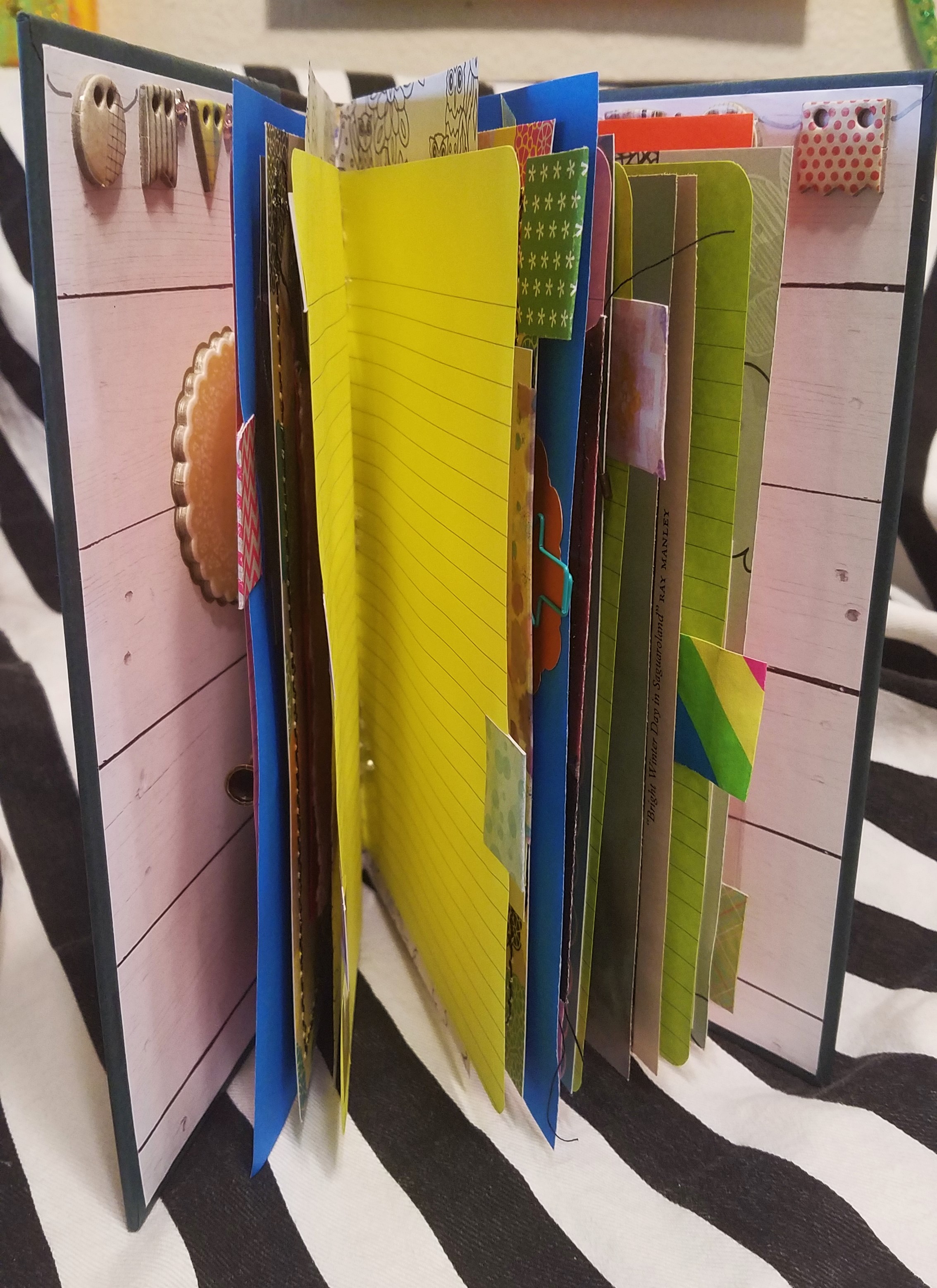 Junk journals can be used as a planner, a notebook, for memory-keeping as a scrapbook, an art journal for your creations, of course as a regular journal, or just about anything you want! Made from a repurposed book, this junk journal includes tabs, tags, a coloring page, pockets, envelopes, a bookmark, and free stickers!