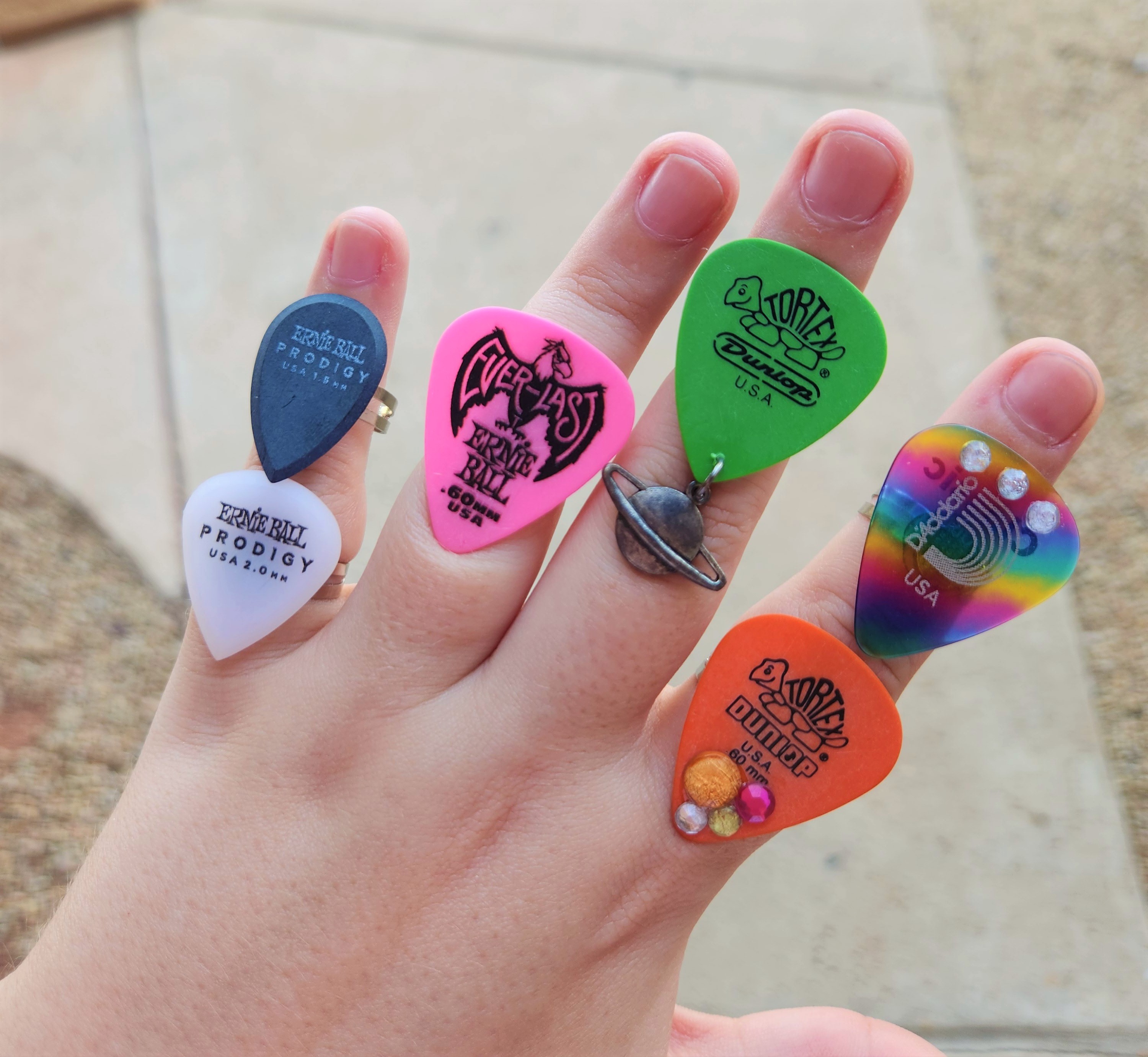 Select from the drop-down menu the guitar pick ring that makes your heart sing! All rings are adjustable!