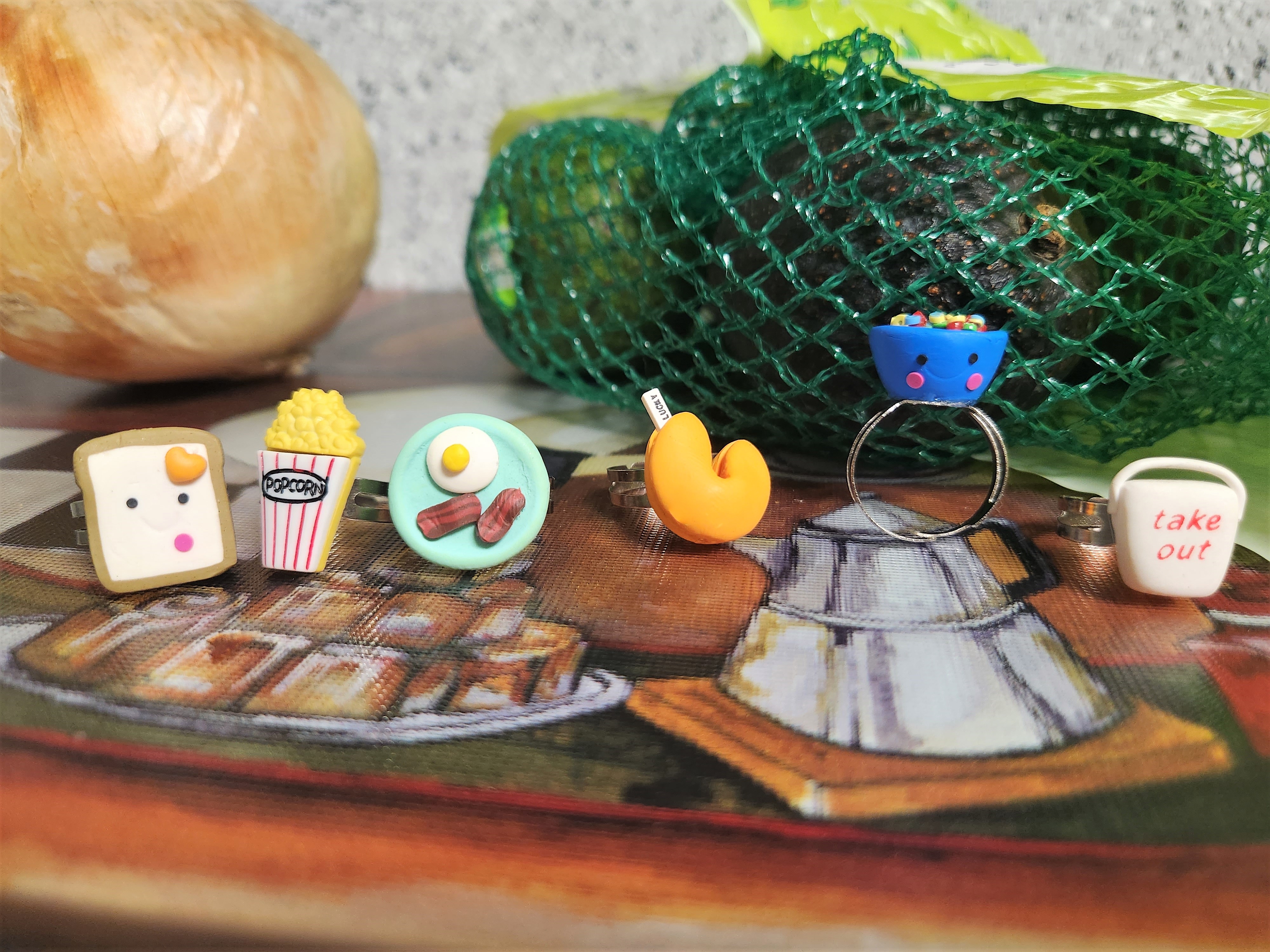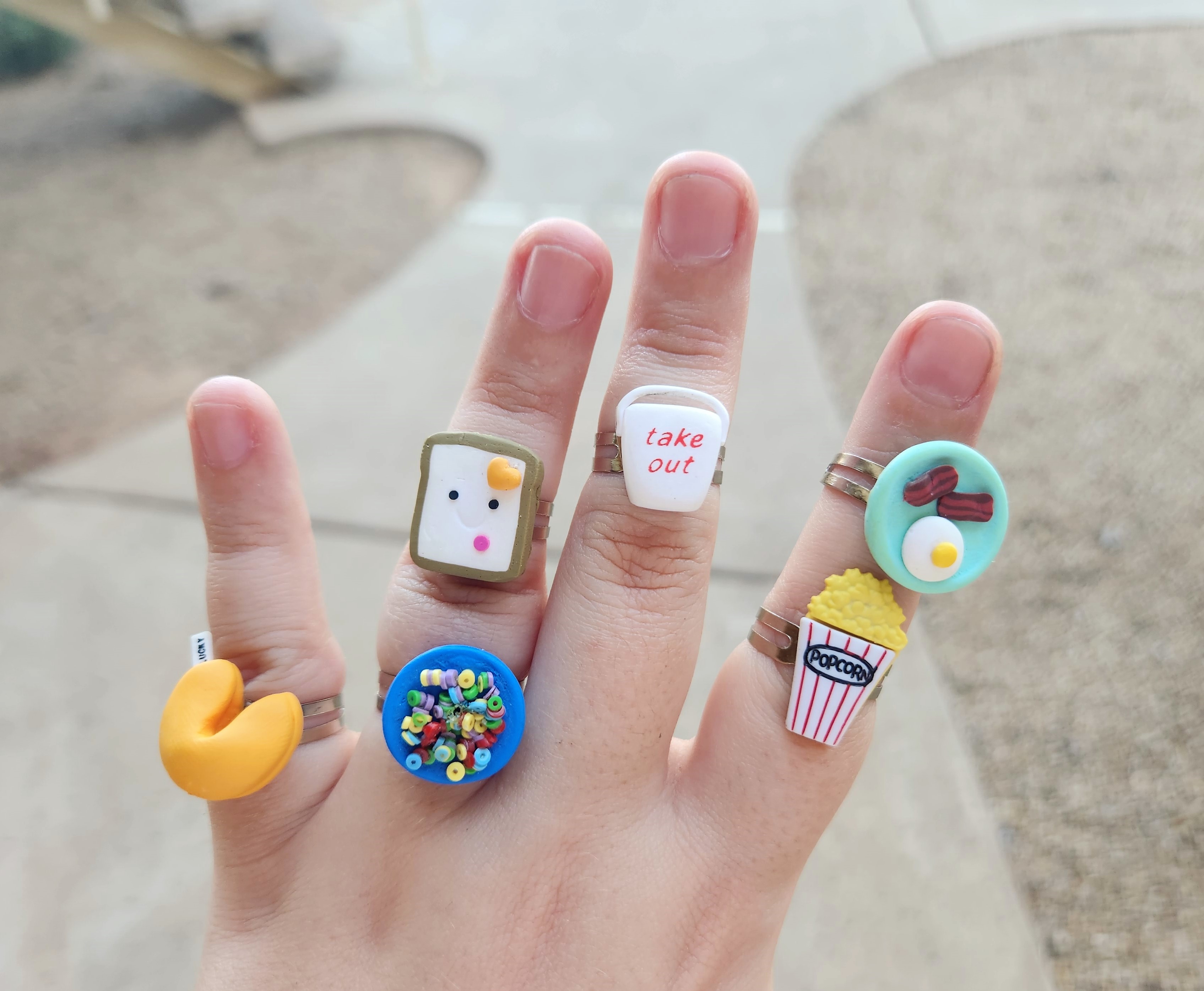 Select a yummy food ring from the drop-down menu to satisfy your hunger! All rings are adjustable! ๐ฟ๐ฅก๐๐ณ๐ฅ๐ฅ ๐ฅฃ