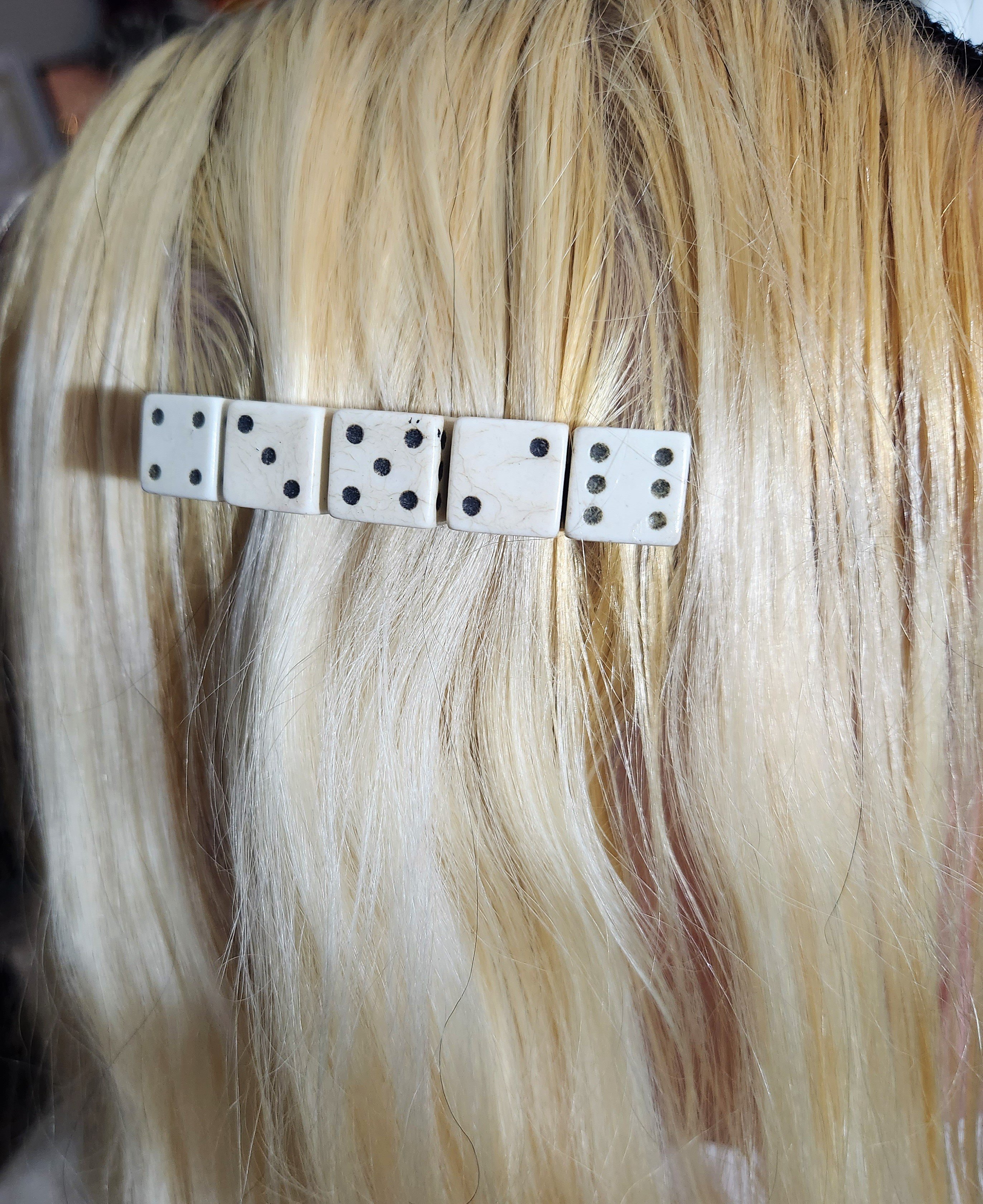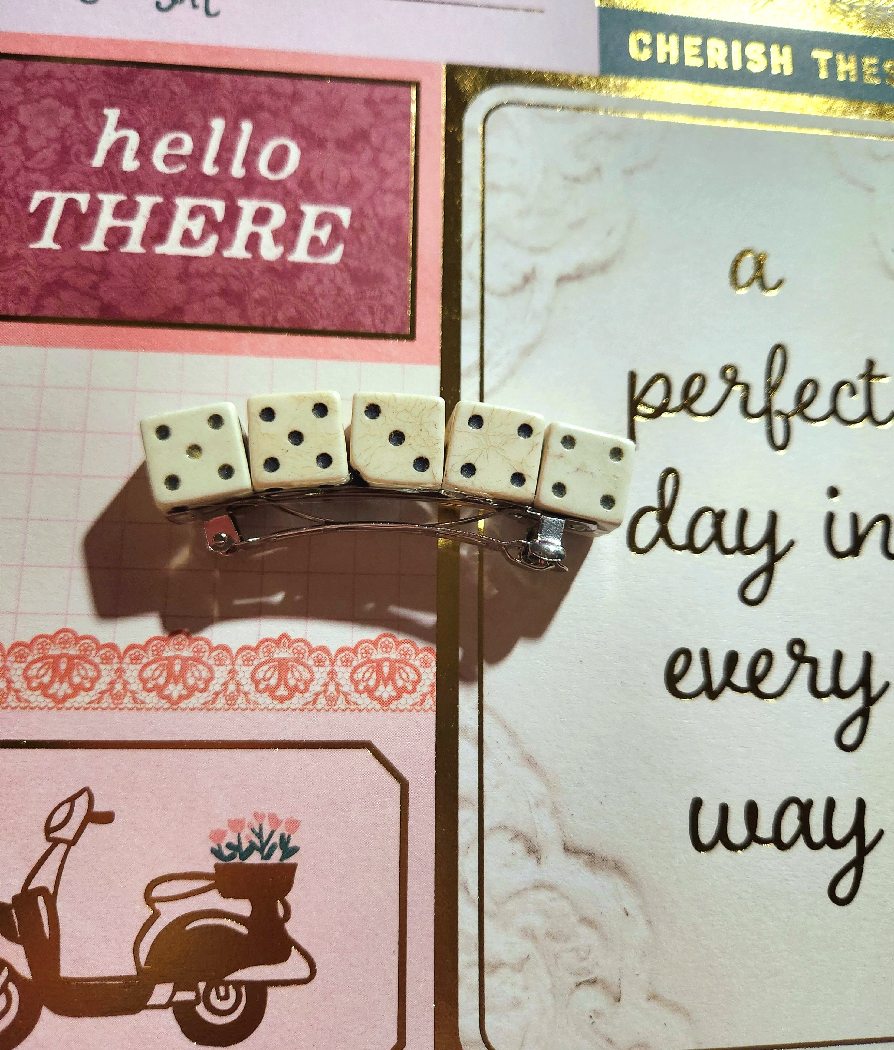 A fun barrette made with real vintage dice! ๐ฒ - approx. 2 1/2" long