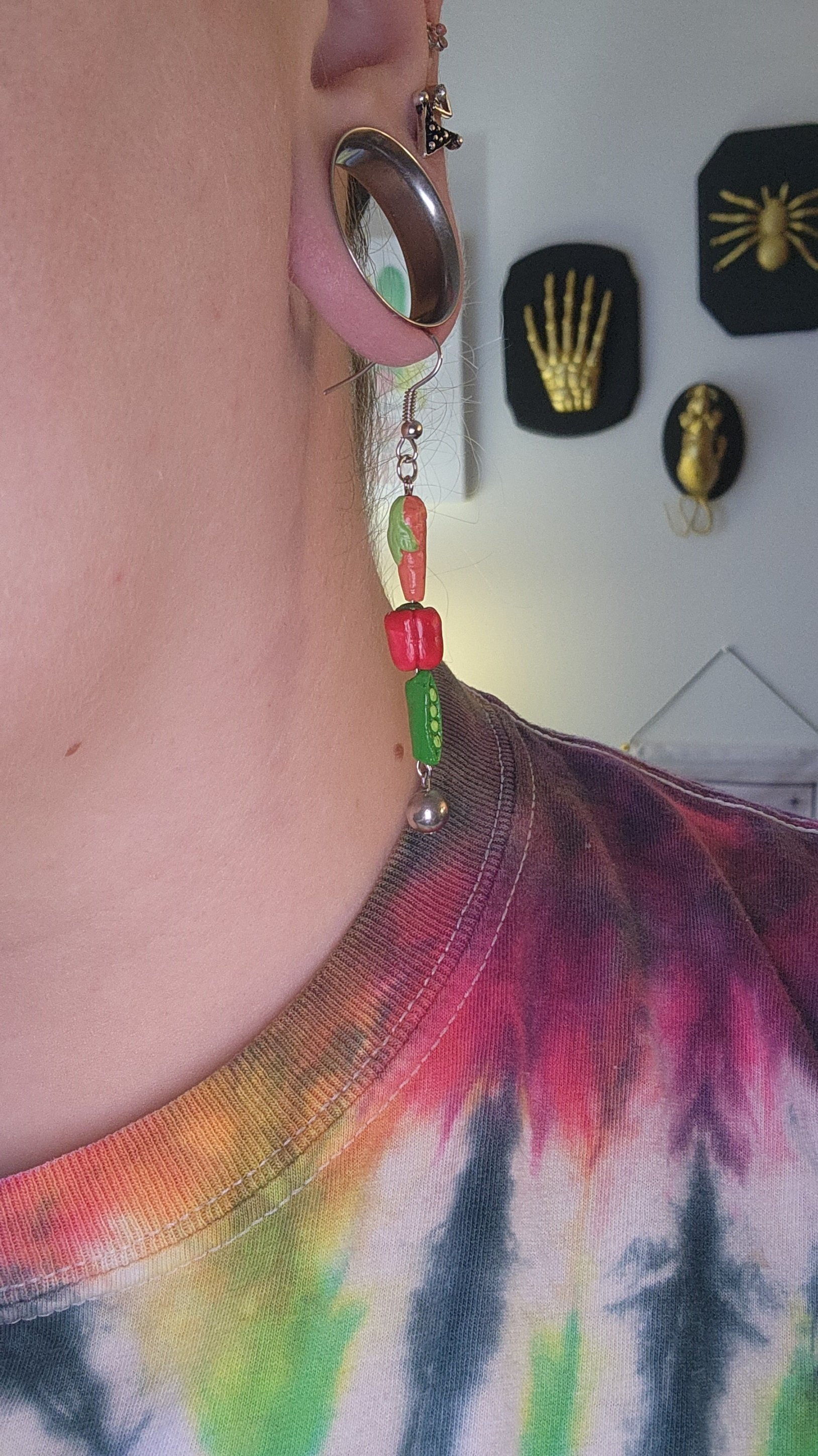 Get your daily dose of nutrients with these veggie earrings! Carrots, bell peppers, and peas on fish hook posts ๐ฅ๐ซ๐ซ - approx. 2" long