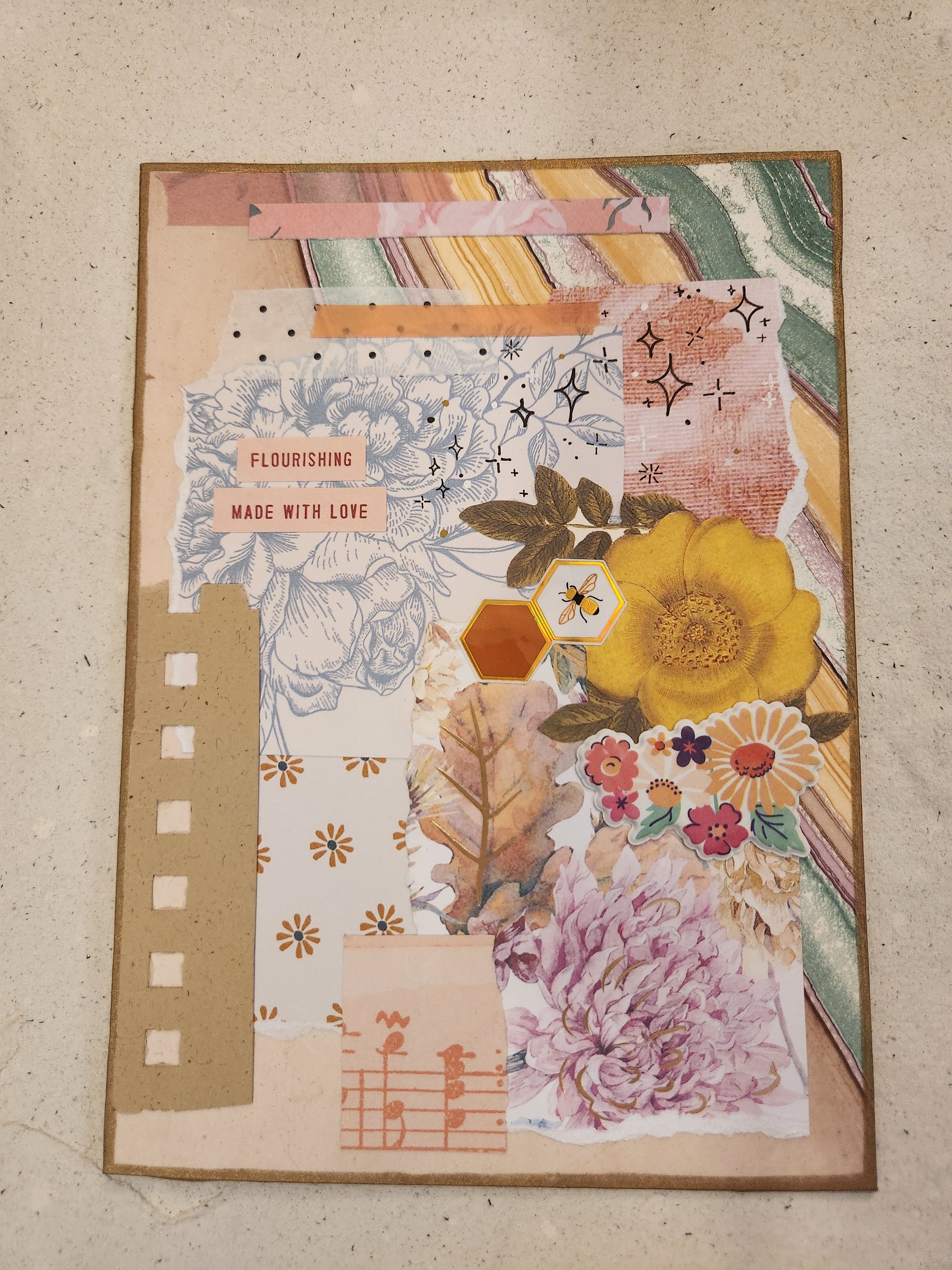 Mini mixed media collage on matboard - 5" x 7" - signed and dated on the back - attached string for hanging