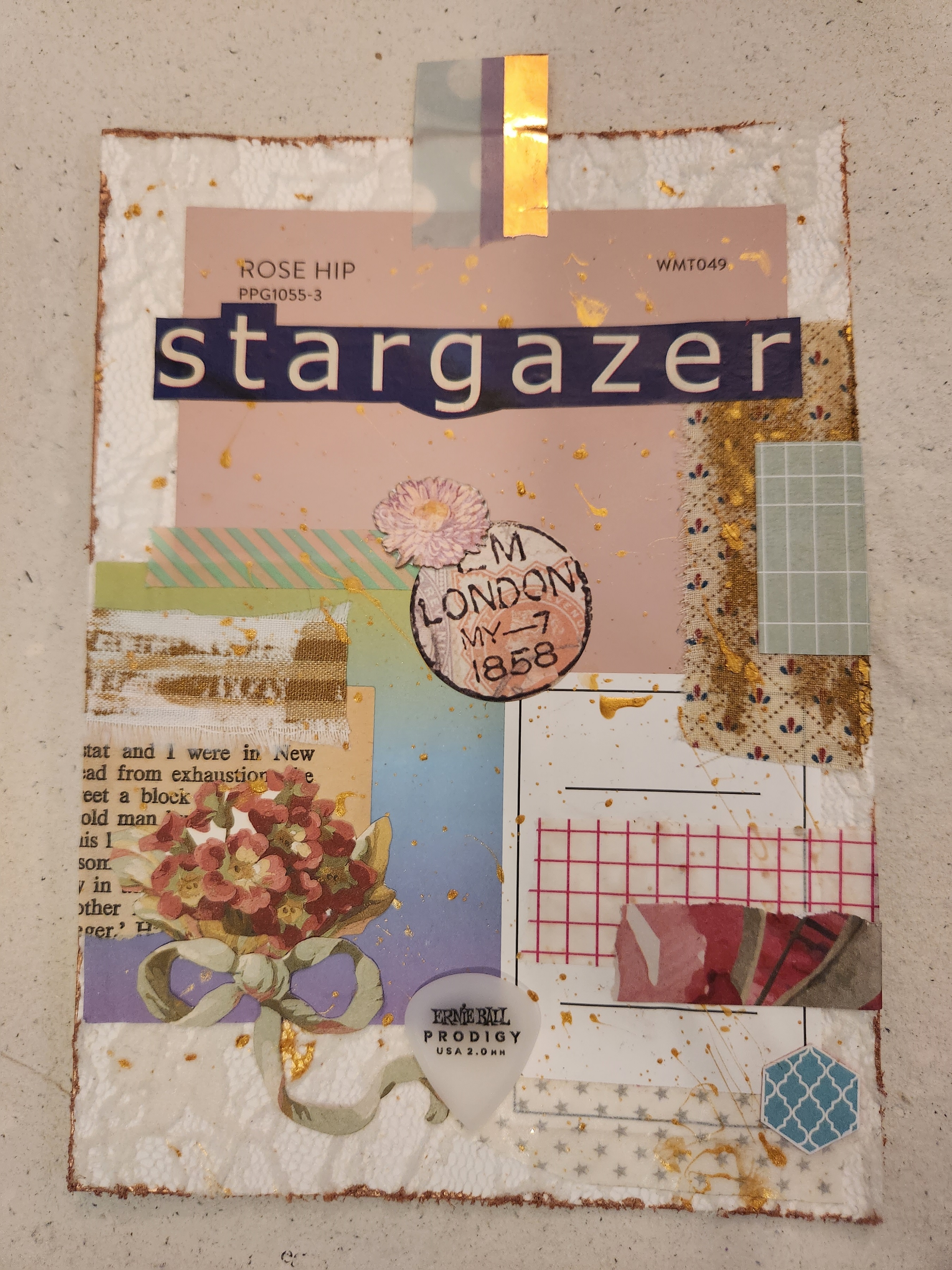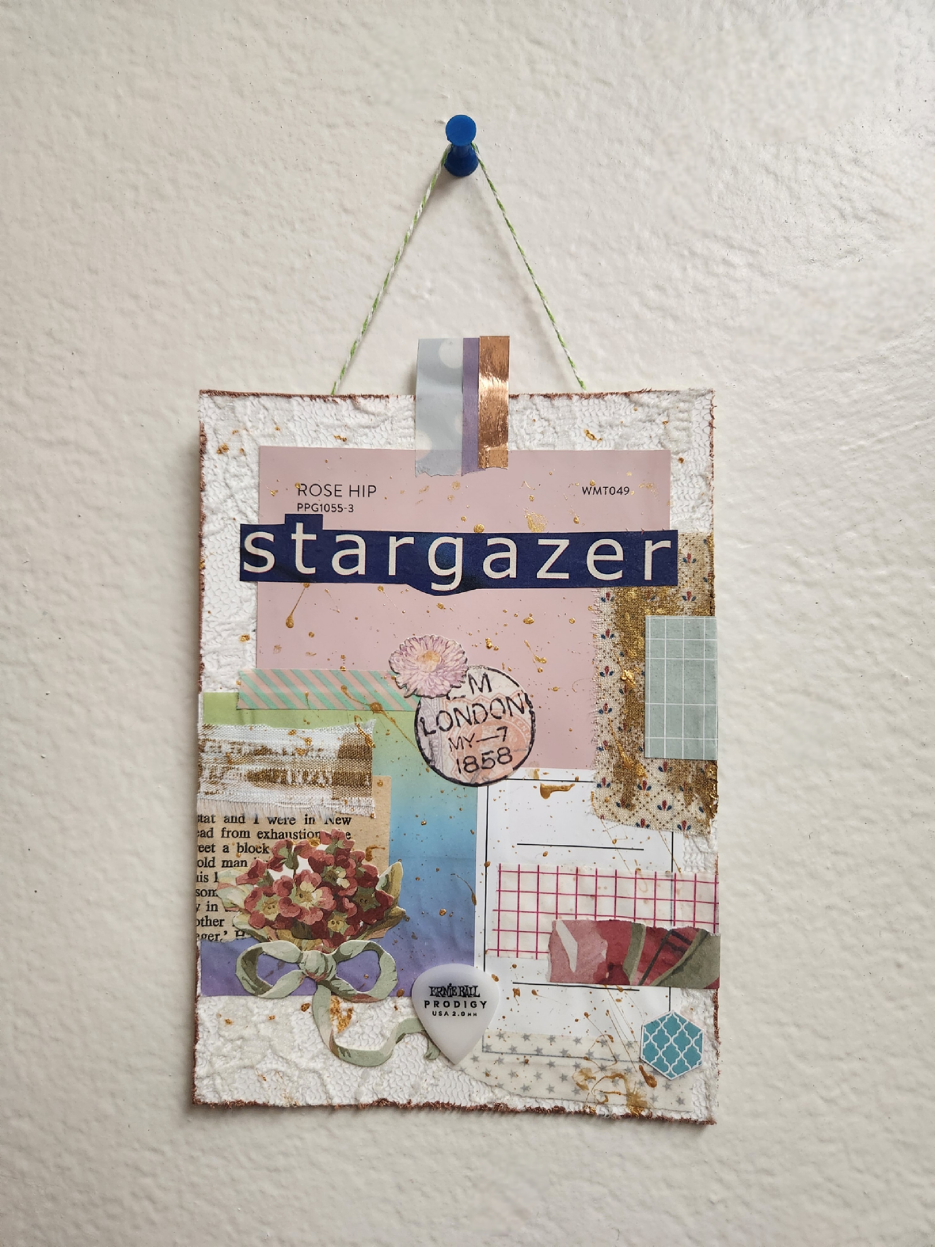 Mini mixed media collage on matboard - 5" x 7" - signed and dated on the back - attached string for hanging