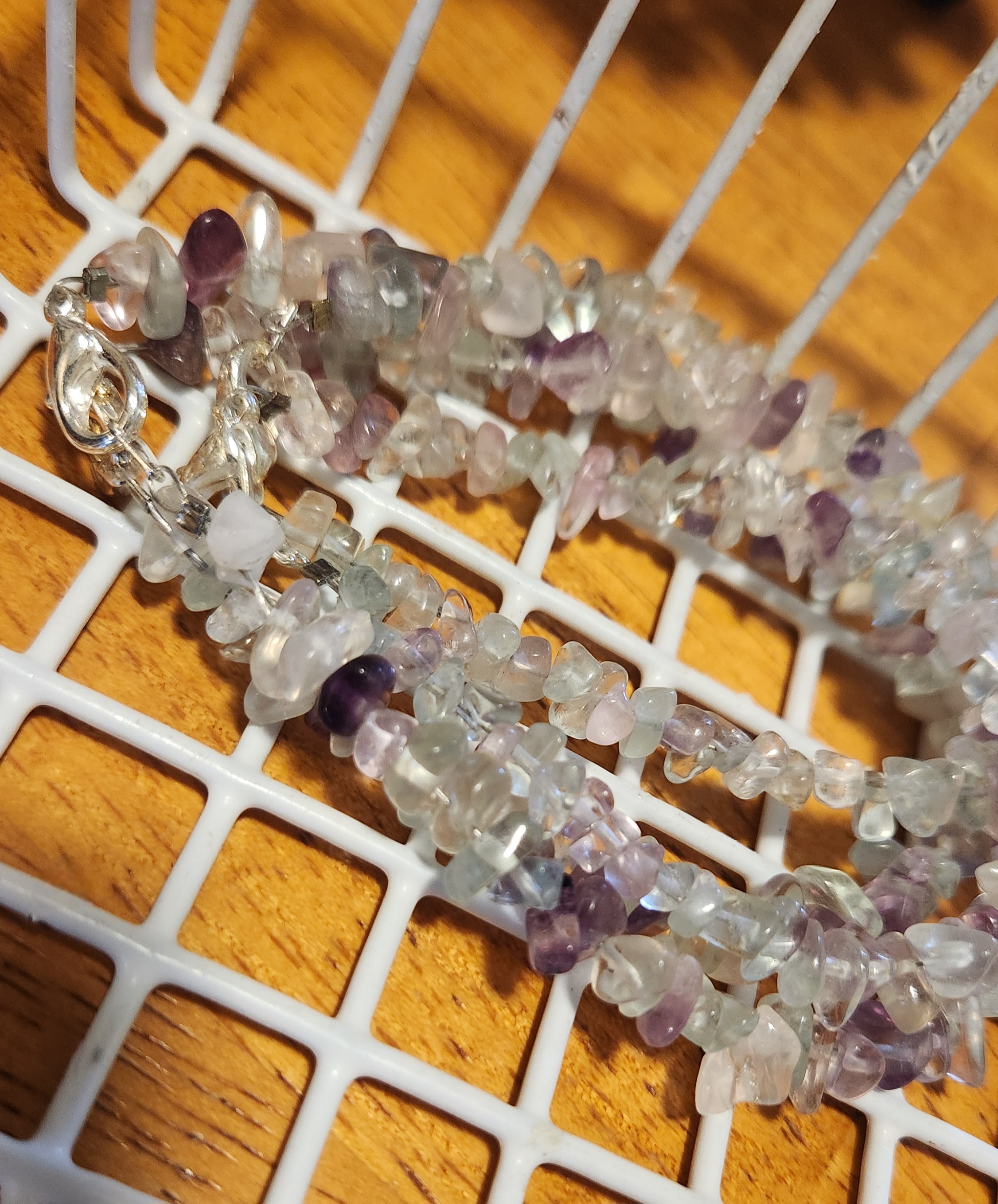 Clear your mind and focus! 4 bracelets in various lengths featuring rainbow flourite crystal chips