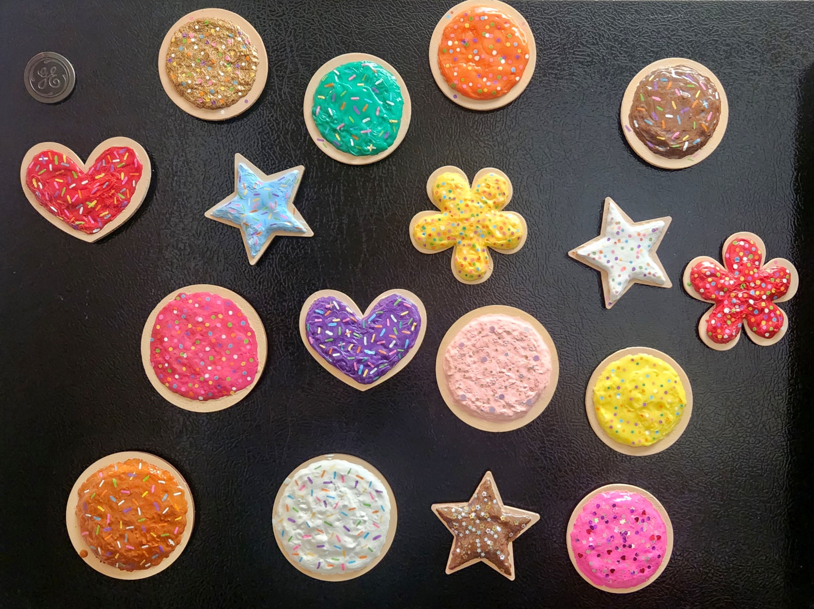 Decorate your fridge with colorful sweets! 17 different magnets in different cookie shapes and frosting colors and decorations to choose from!