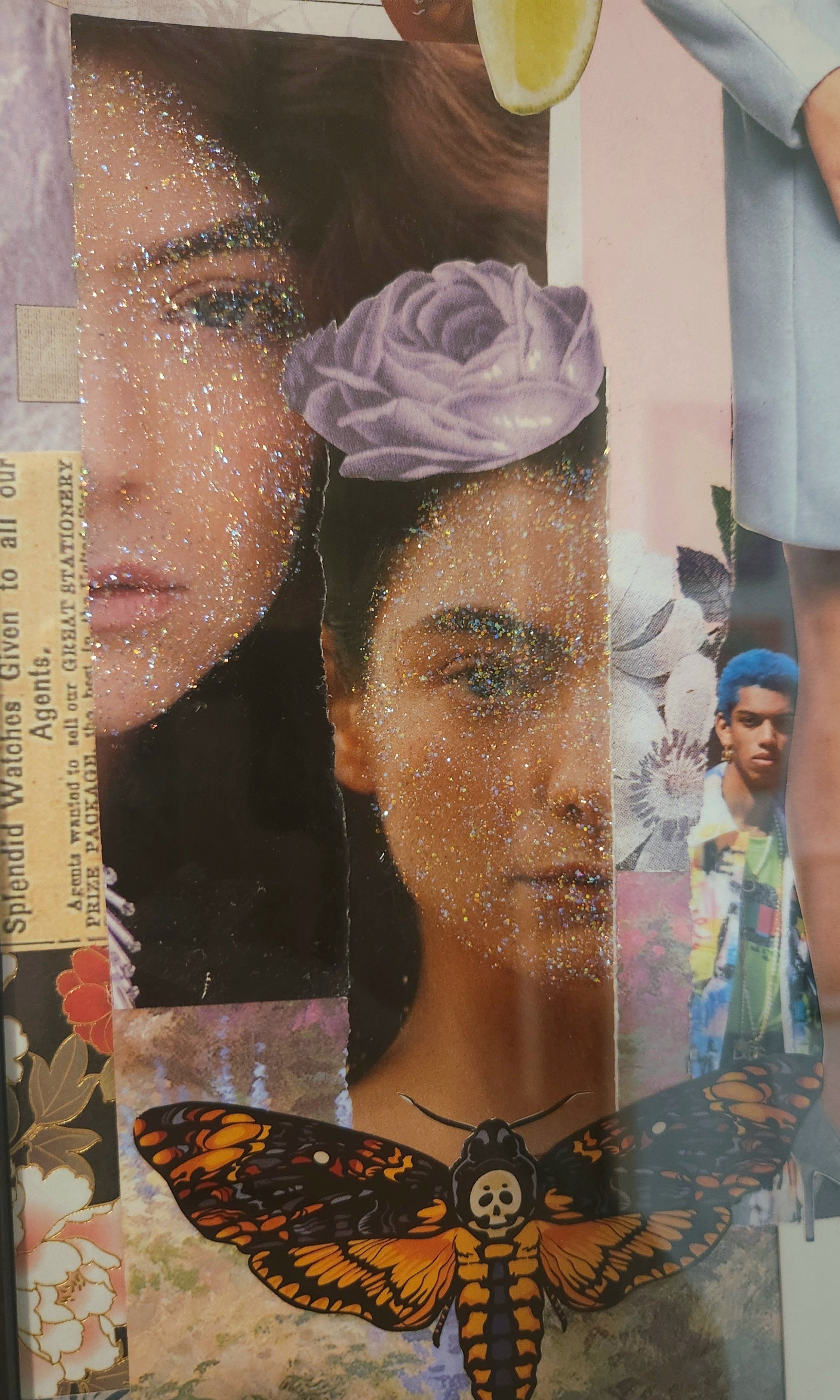 Original collage art in black frame - Artwork: 9" x 12" - Framed: 10" x 13" - signed and dated on the back of original piece