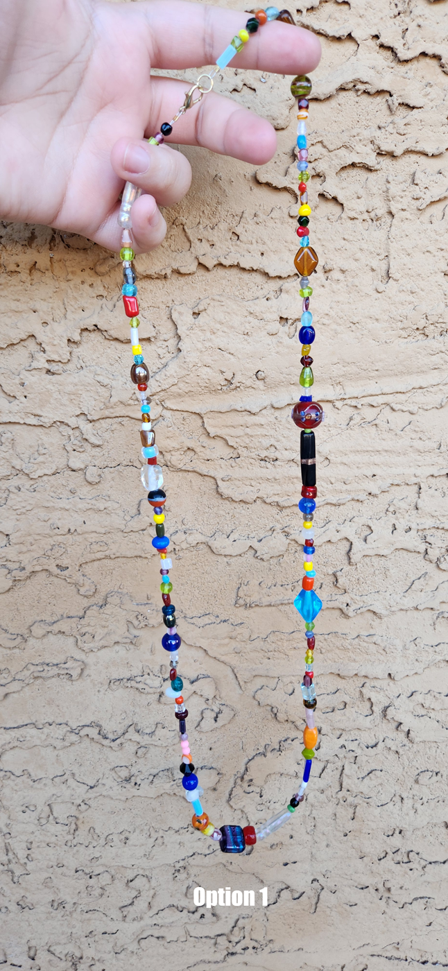 Two different necklaces made with an assortment of colorful glass beads ~ one of each available, labeled on the following photos, make your choice from the dropdown menu to the side :)